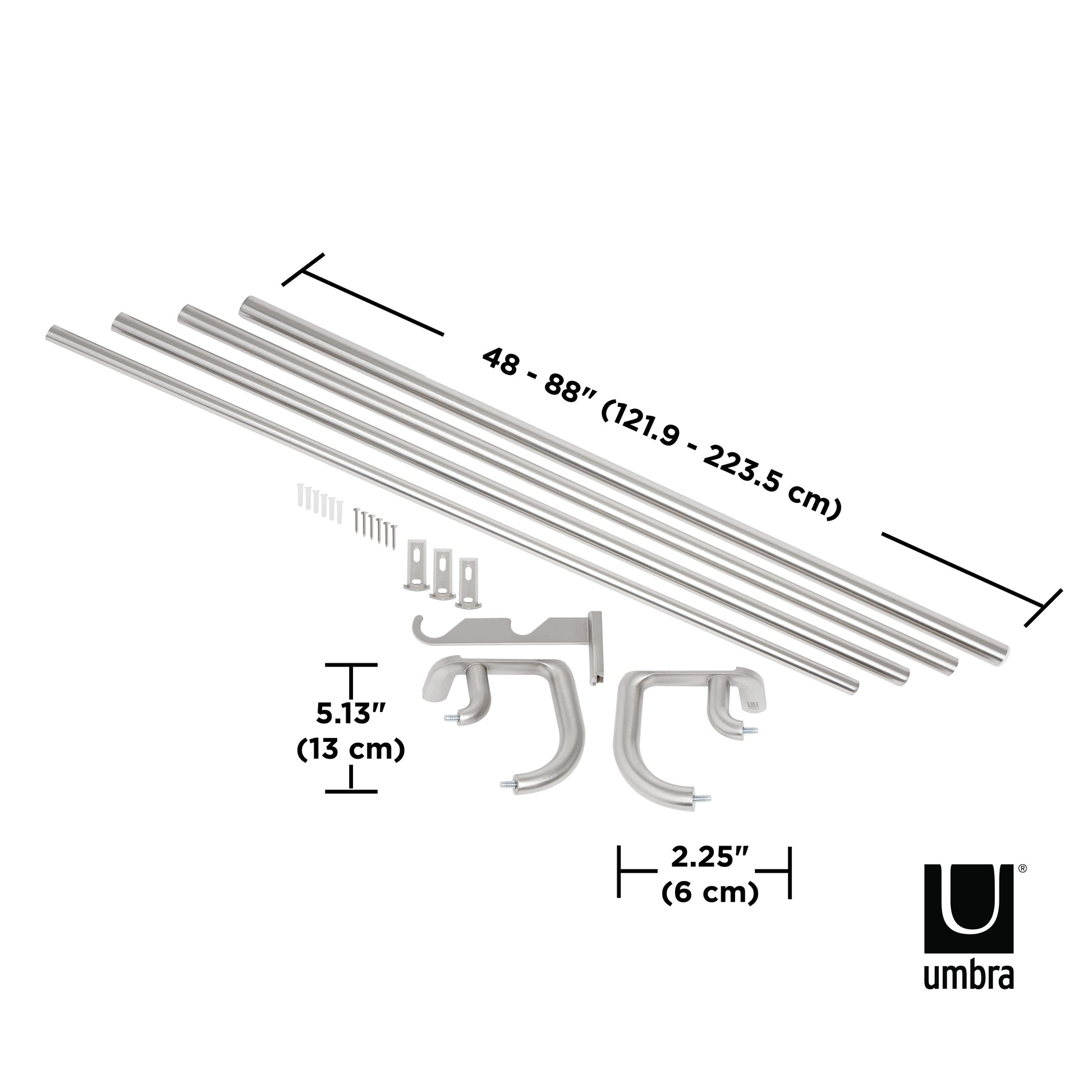 トワイライト ダブル カーテンロッド 121.9~223.5cm ニッケル