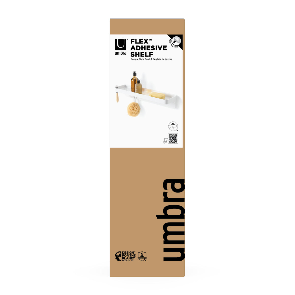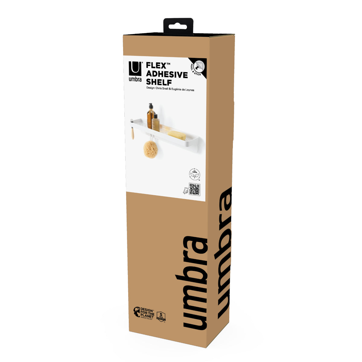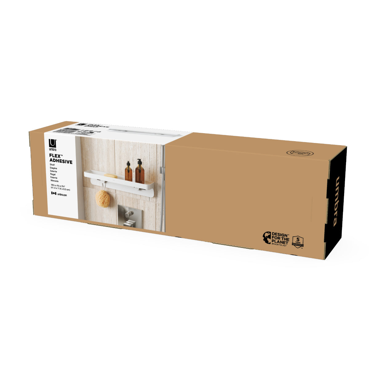 ■カウンターやシャワー スペースを整理整頓できるフレックス アドヒーシブ シェルフは、あらゆるタイプの収納に使用できるモダンなバスルーム シェルフです。