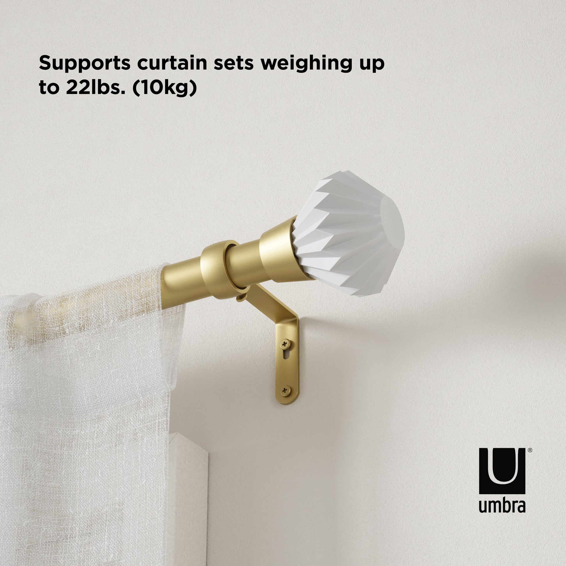 スチールと樹脂で作られたこのカーテンロッドは、デザインが魅力的でありながら耐久性があります。