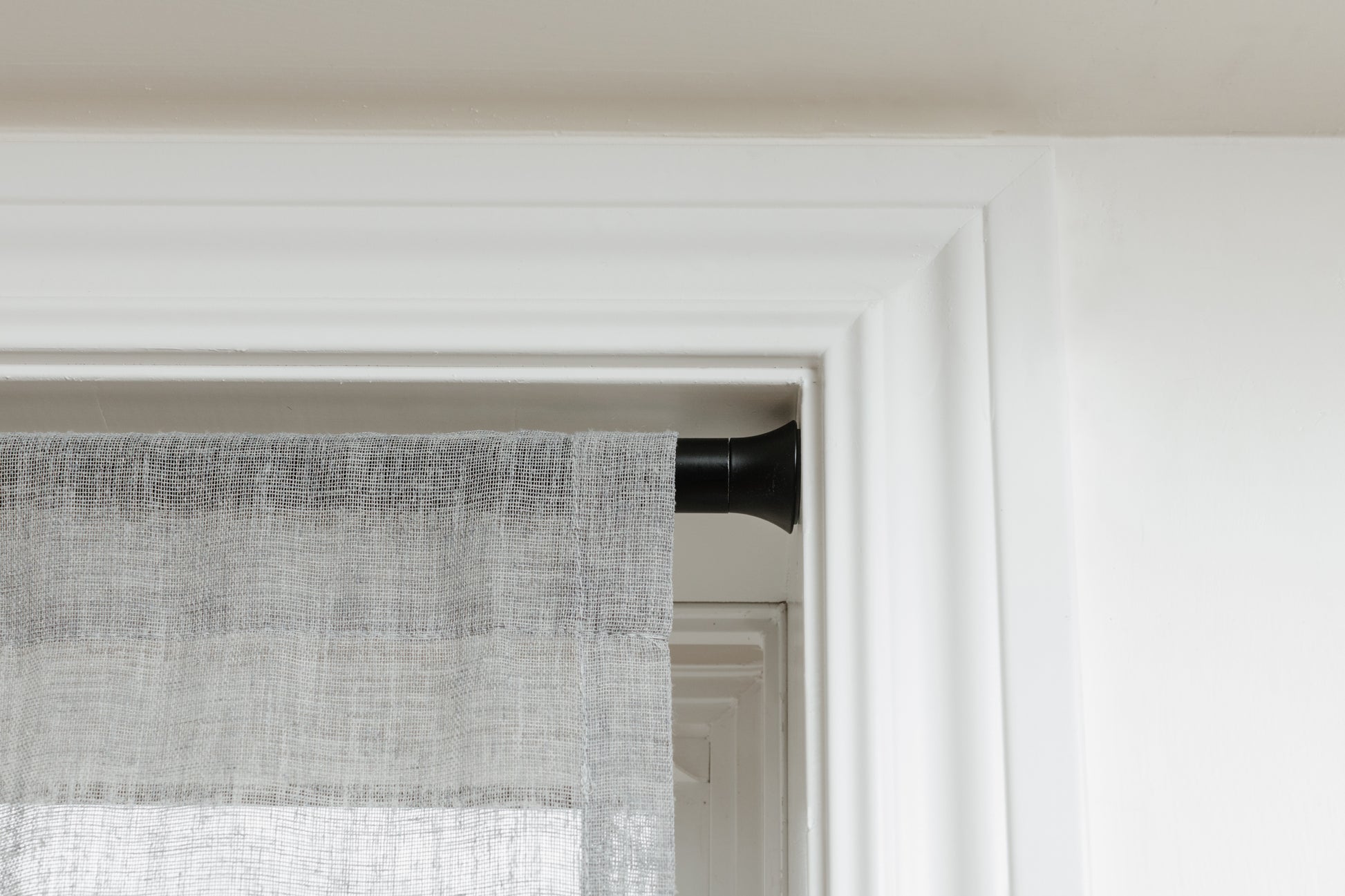 クローマは、カーテンを吊るすためにテンションを使って窓フレームの内側に取り付けられます。