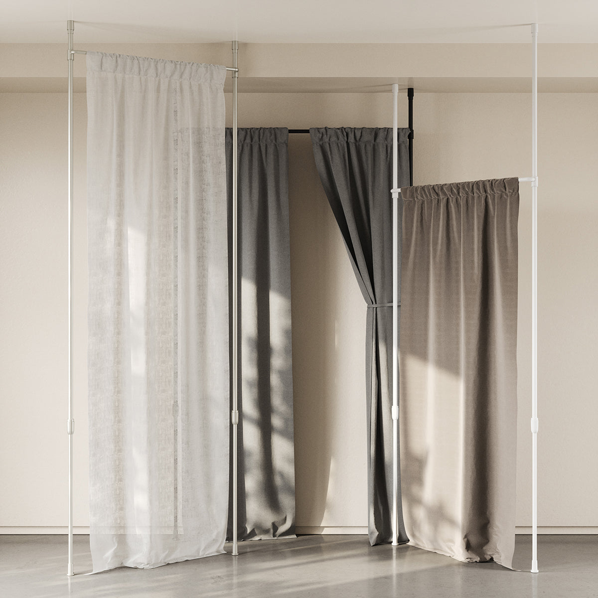 穴あけができない賃貸住宅、プライバシーを確保したいスタジオ、または部屋を区切る必要がある寮の部屋などです。