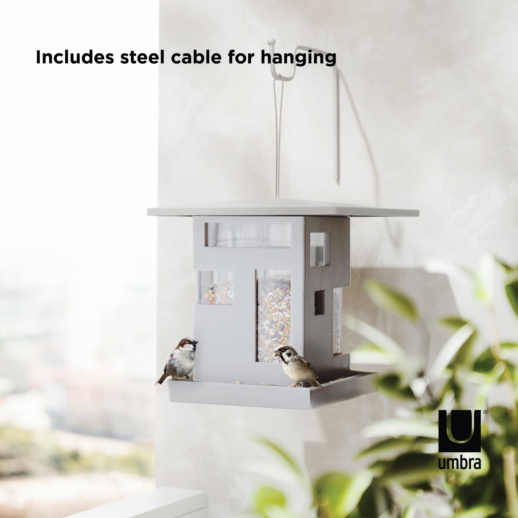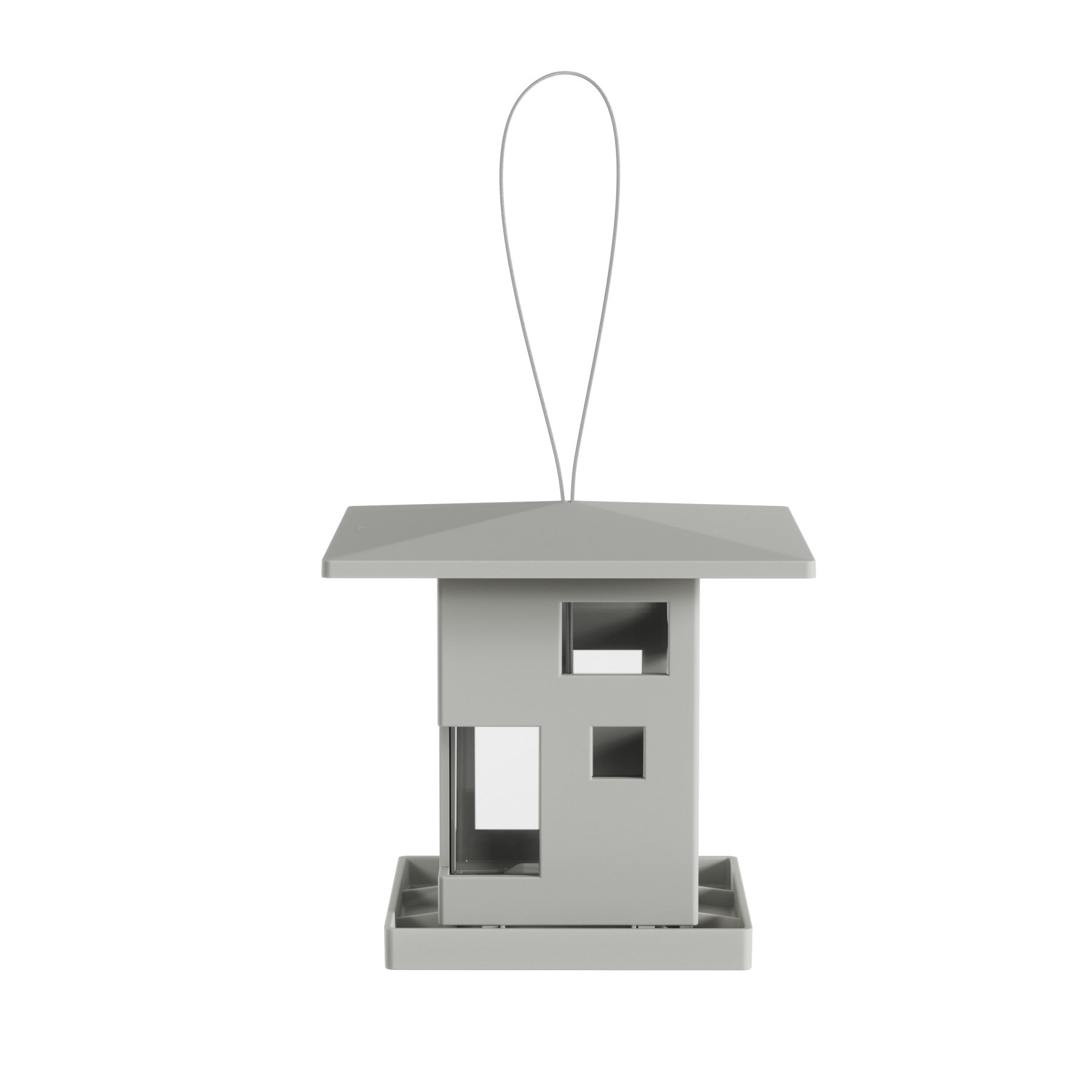 家の形をした鳥のエサ台です。窓から餌が少なくなっていることを簡単に確認する事ができます。
