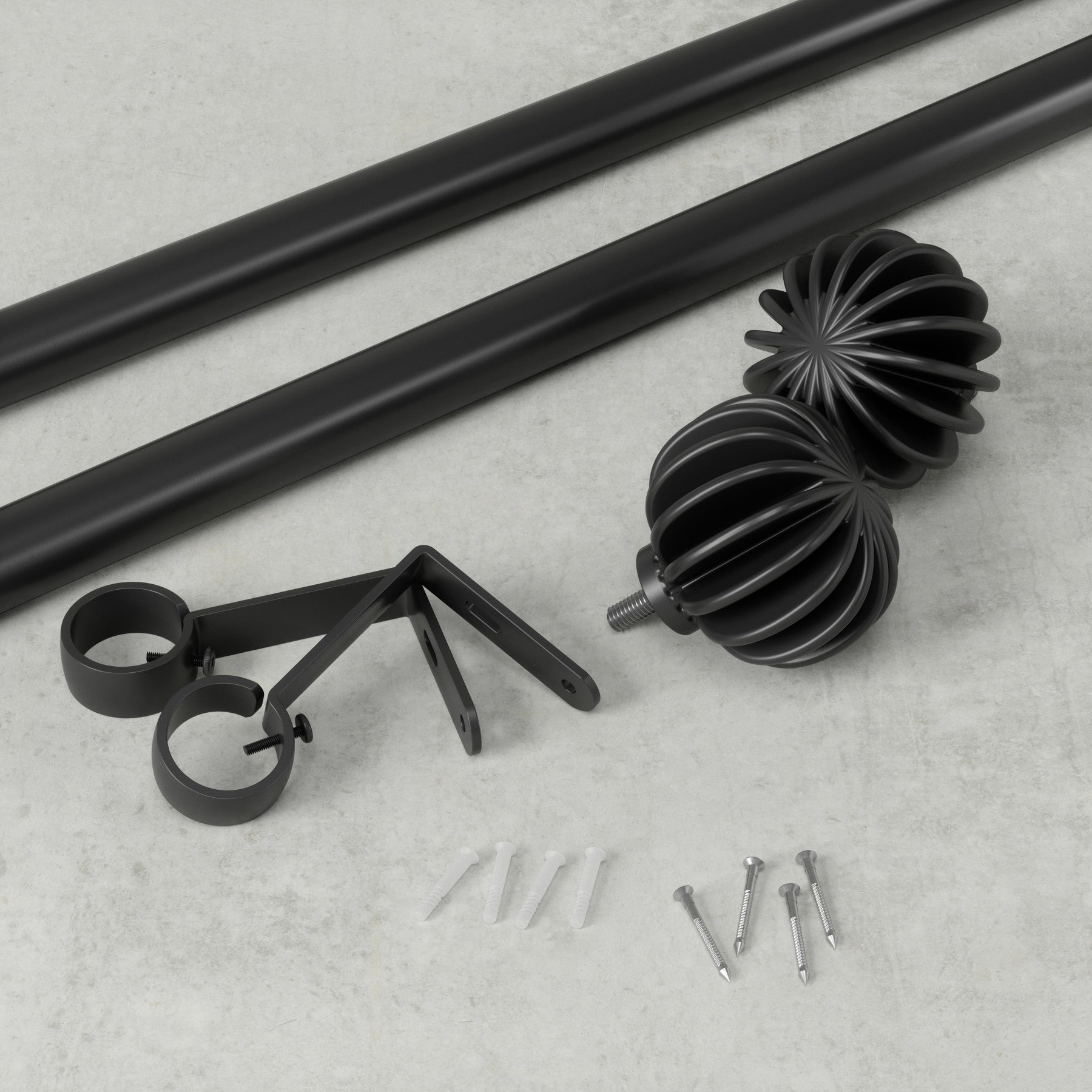 完全なモダンカーテンロッドセット:フィンは、織り目加工のプリーツフィニアルを備えたモダンなデザインが特徴です