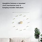 文字盤はシンプルな木製で、吊り下げ式の個性的な時計です。