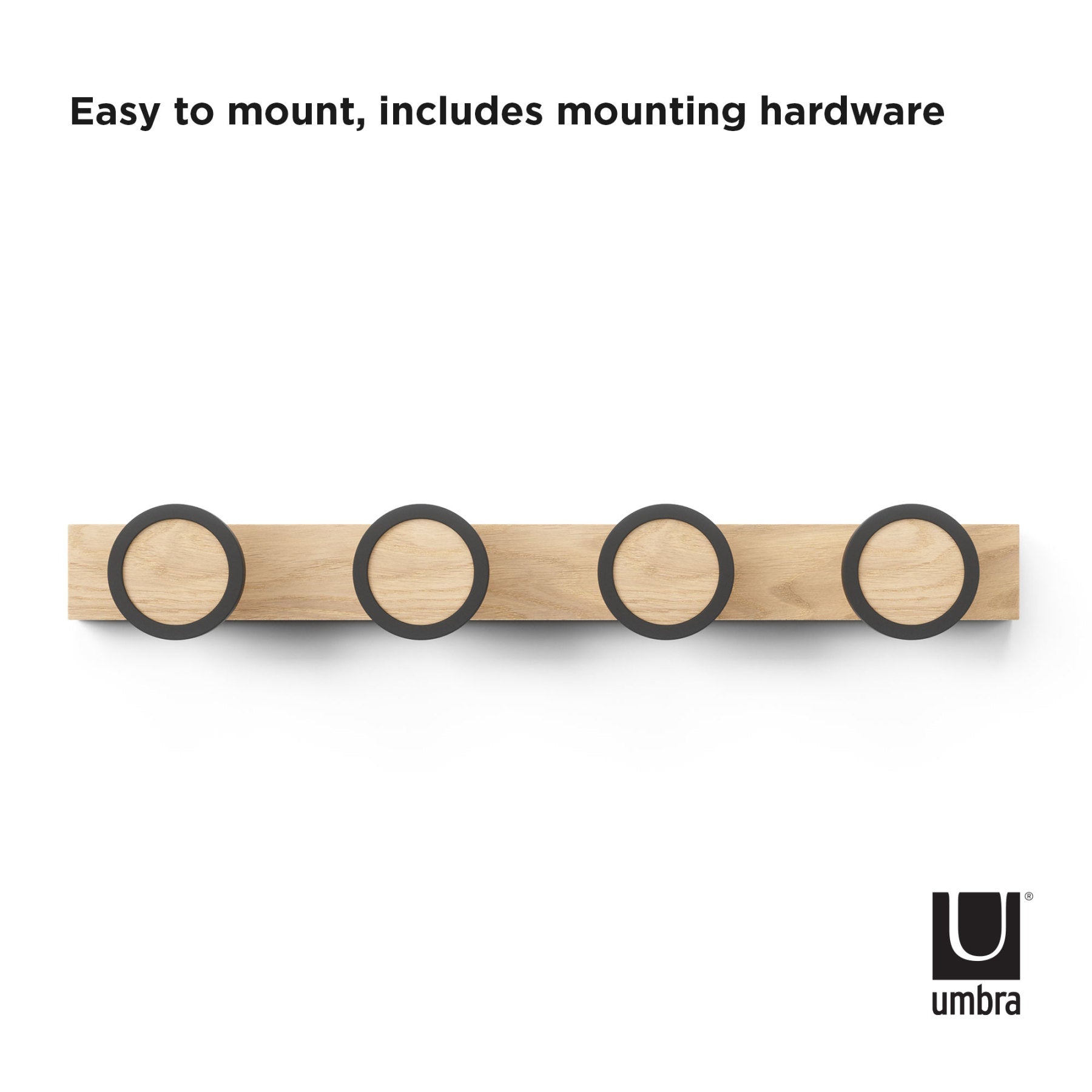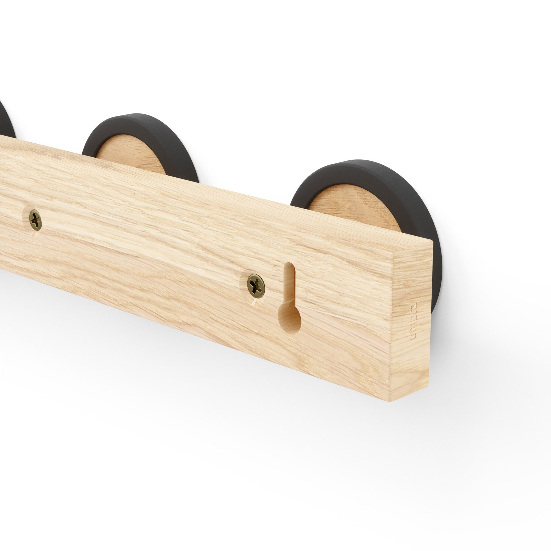 天然木で温かみのある木製のフックは、機能性だけでなく落ち着いた印象を与えてくれます。各フックの最大耐荷重は約2kgです。