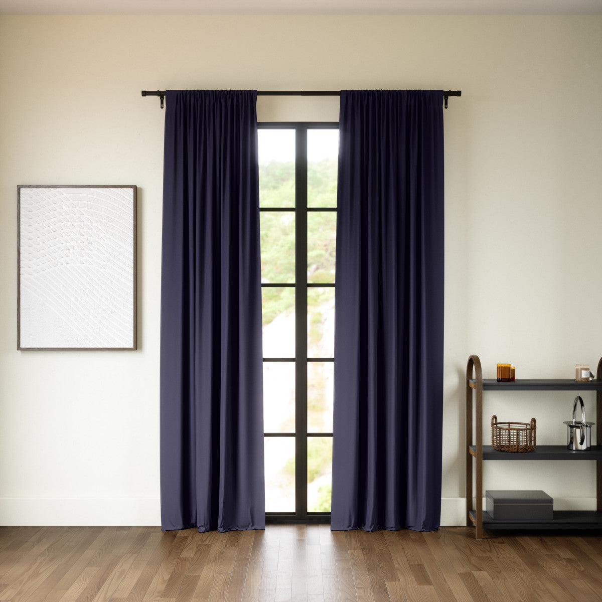 トワイライトブラックアウトカーテンロッドと組み合わせて、最大限のブラックアウトセットアップを実現します。